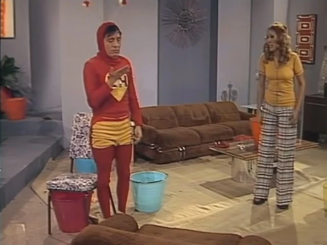 Uma mulher (Florinda Meza) já está cansada de viver em uma casa cheia de goteiras e reclama com o senhorio (Rubén Aguirre), mas este é um cafajeste que só quer arrancar dinheiro. Depois de muitas ameaças, assustada decide chamar o Chapolin Colorado, que por sua vez resolve esvaziar os baldes cheios d'água.